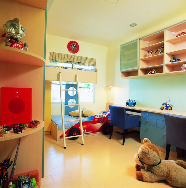 兒童房一向以清爽多彩的色調為主,如粉紅色、粉藍,以減少壓迫感,讓小朋友在房間感到安心、舒適。此外,小朋友需要較大的空間,規劃兒童房時應以動線順暢、寬敞為第一考量,櫃子做少一點或以矮櫃代替,減少壓迫感,而書桌、書櫃可規劃文具抽、置物小抽屜,方便小朋友收納小東西。